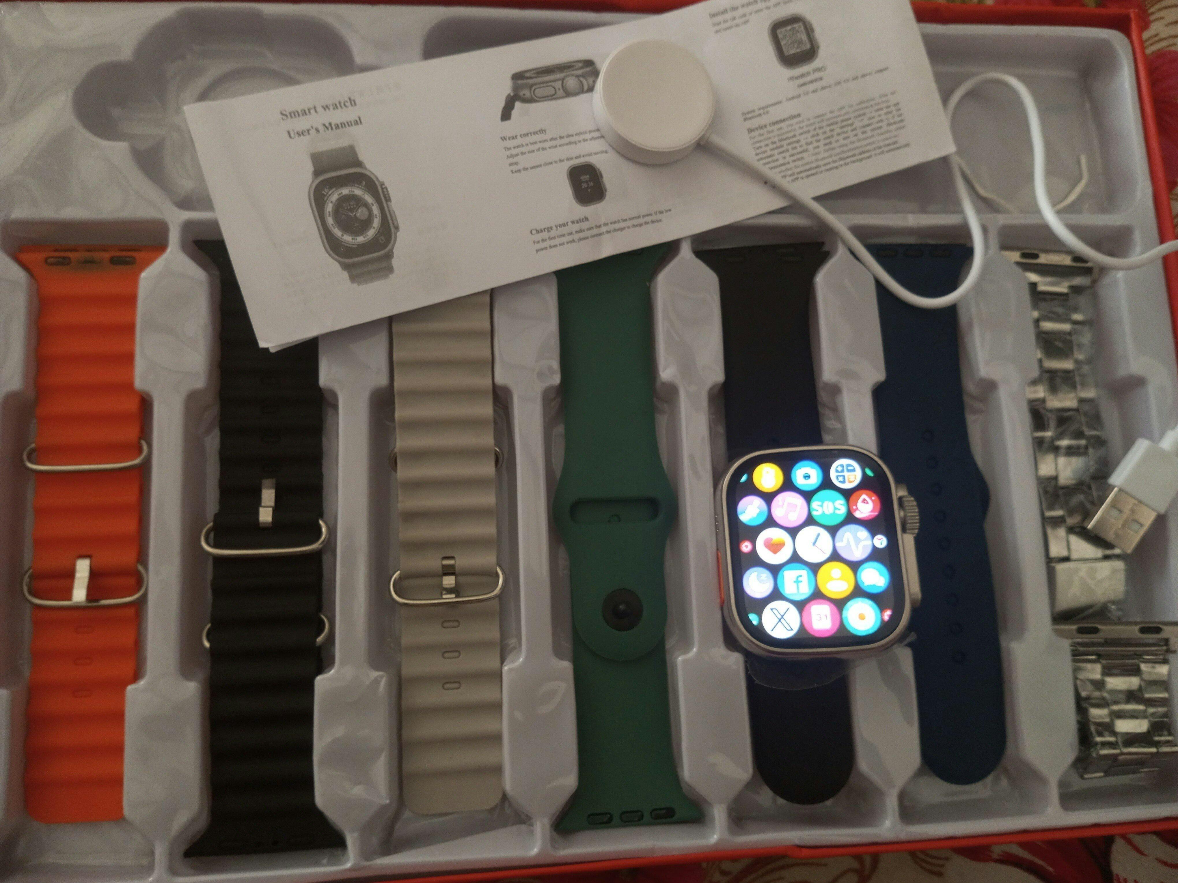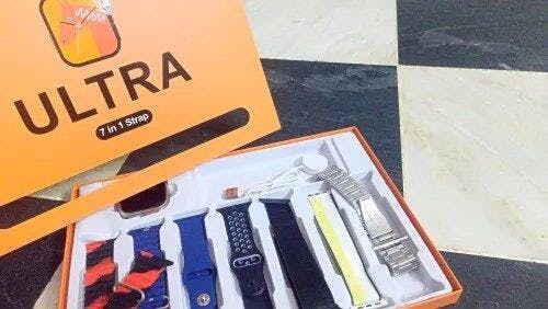7-in-1 Ultra Smart Watch – 2.1-Inch Full HD Display, Series 8, Wireless Charging, Waterproof, Includes 7 Straps