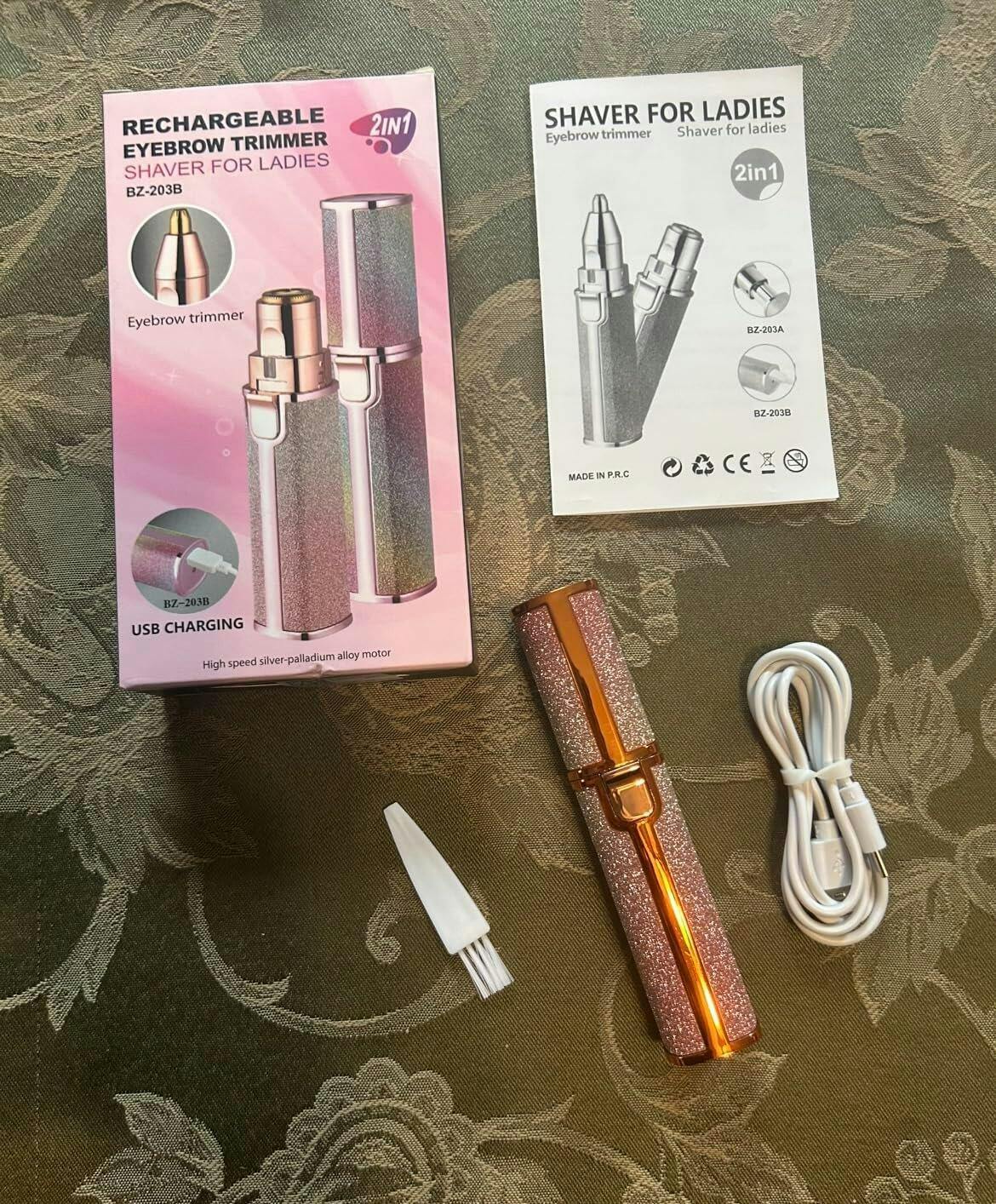 Rechargeable 2-in-1 Eyebrow Trimmer and Facial Hair Shaver for Women, USB Charging